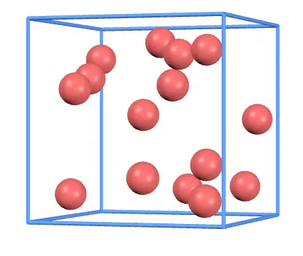 次に分子数を増やしてみましょう。容器の大きさを戻してから、追加 ボタンを何度か押してみましょう。このように分子数が増えたはずです。